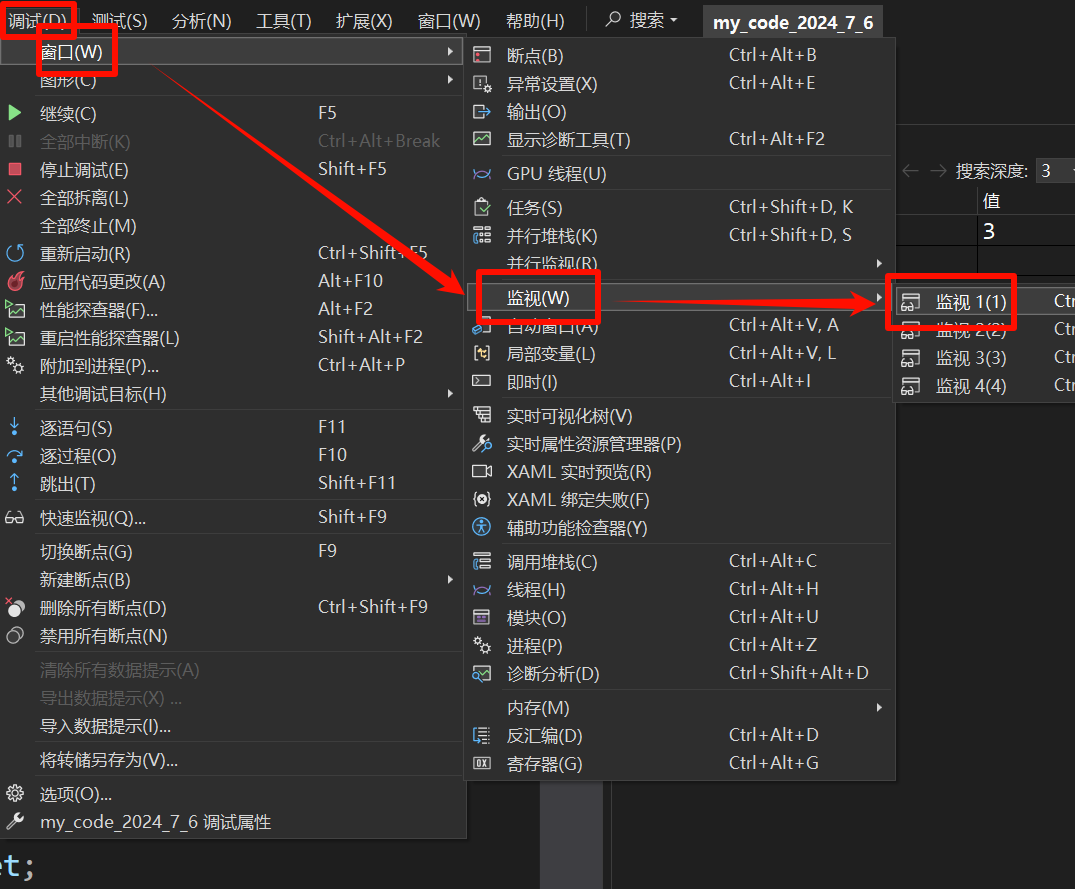 因此 n 的读取没有出错,还有一种检查方法就是打开监视窗口,点击 添加要监视的项 添加要监视的变量。