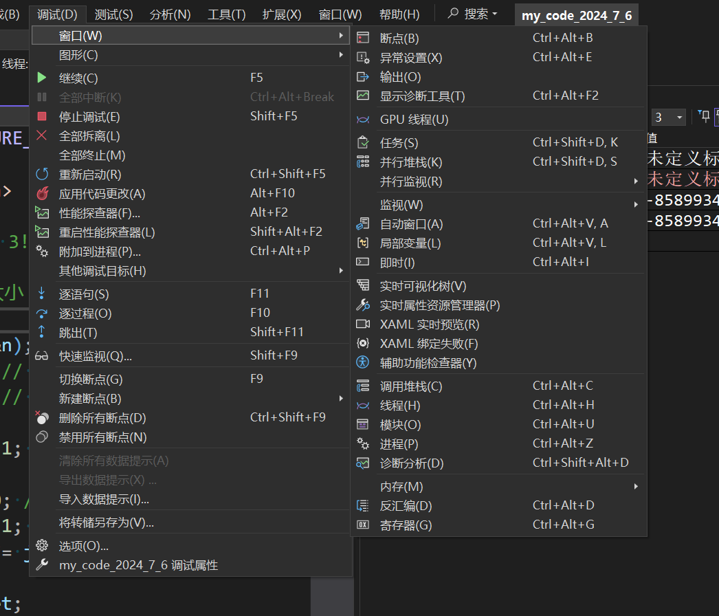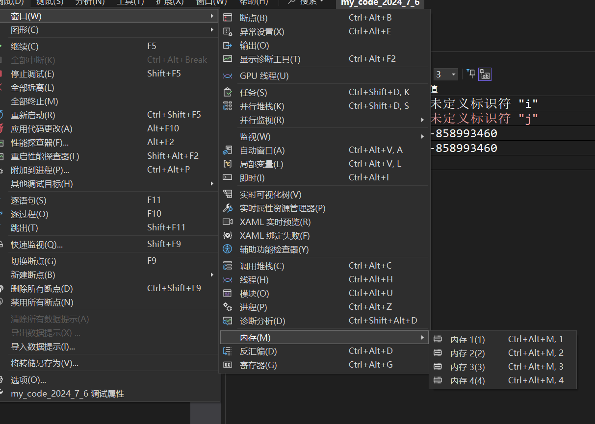 Linux 中的调试工具是 gdb,而 Windows 下的 VS 以强大的调试界面闻名,并且该 IDE 也在不断增强现代化(2024-6-6)。