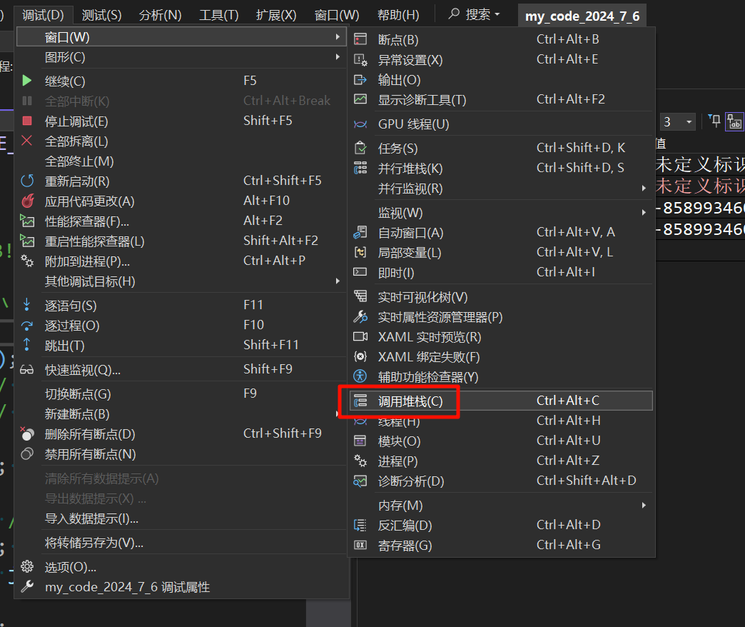 4.3.4.调用堆栈窗口